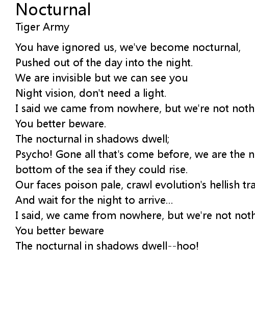 You have ignored us, we've become nocturnal, |