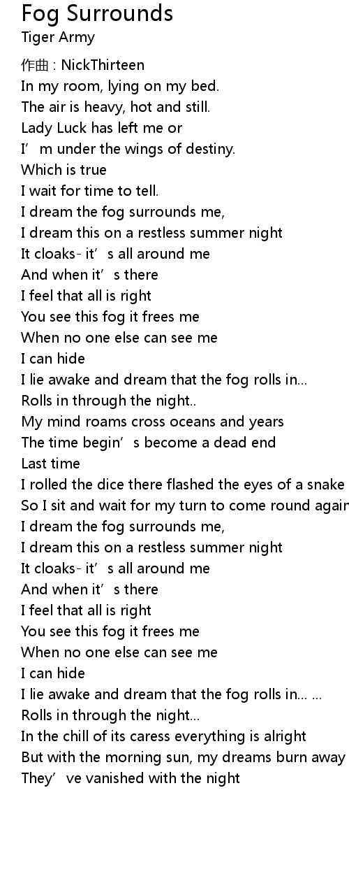 | 歌曲 | Fog Surrounds |