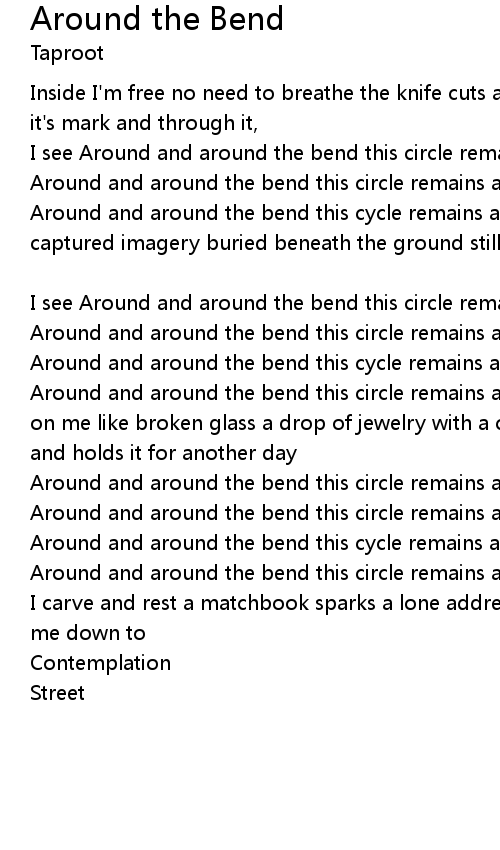 Around and around the bend this cycle remains a test in the garden she's scene captured imagery buried beneath the ground still life all around and through it, |