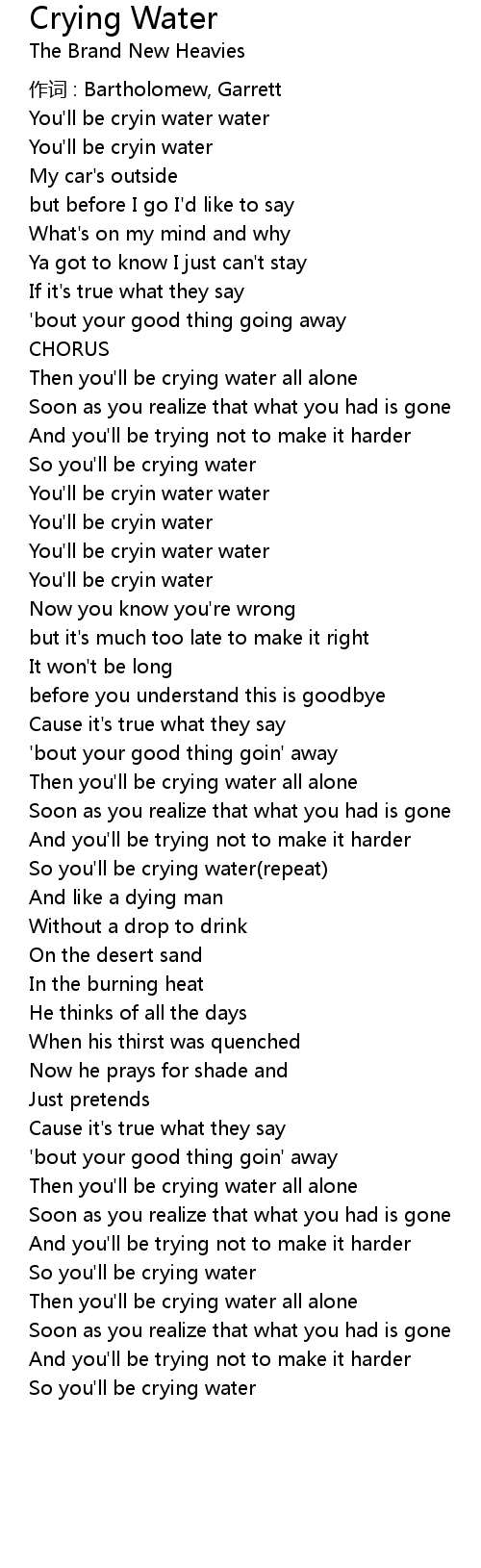 | So you' ll be crying water repeat | |