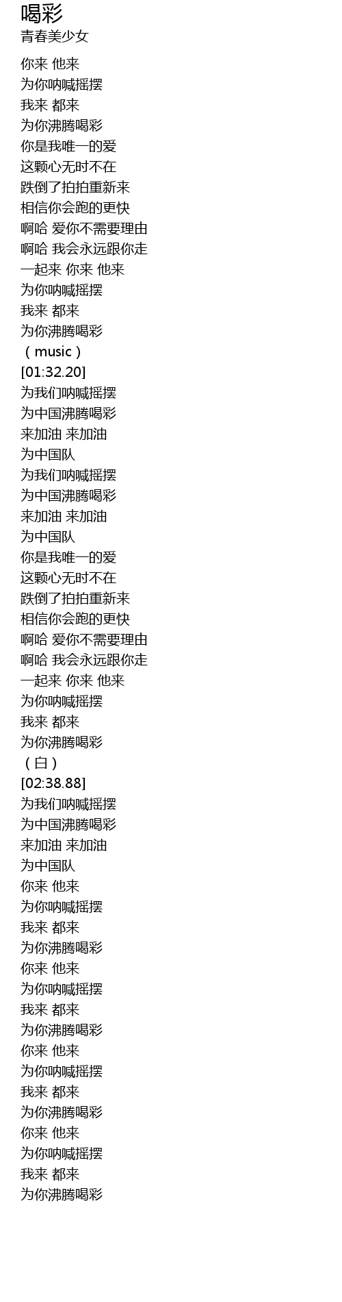 | [03:01.94] | lái jiā yóu lái jiā yóu |