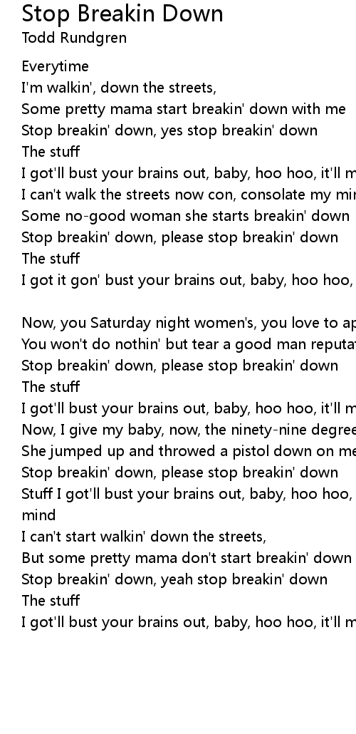 Stop breakin' down, please stop breakin' down |