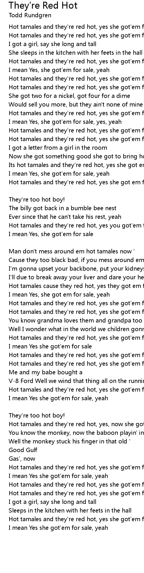 Hot tamales and they're red hot, yes she got'em for sale [Spoken:] |
