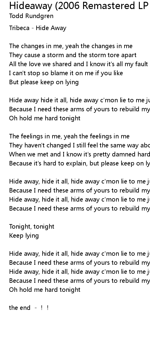 | Hide away, hide it all, hide away c' mon lie to me just on more time | |