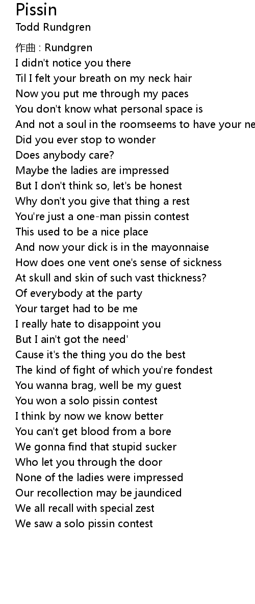 | You' re just a oneman pissin contest | |