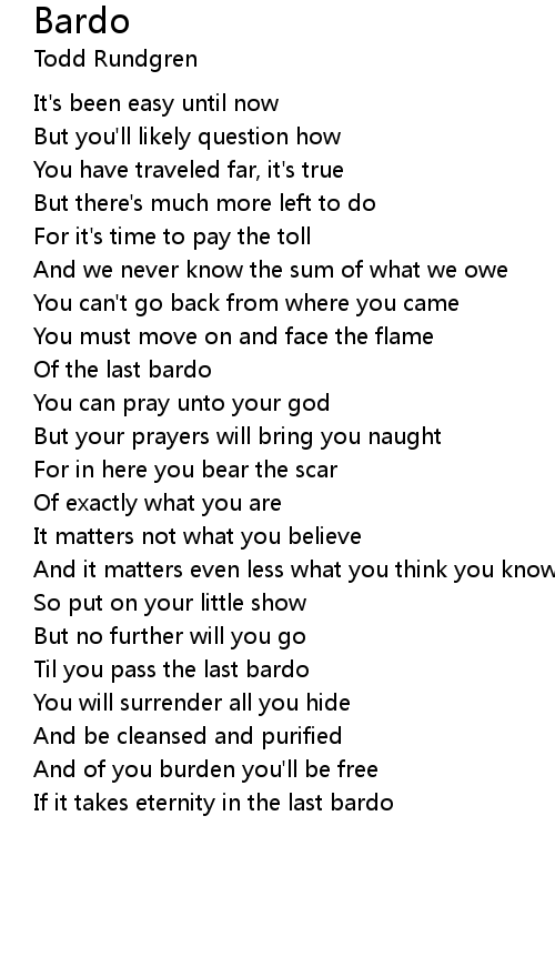 Til you pass the last bardo |