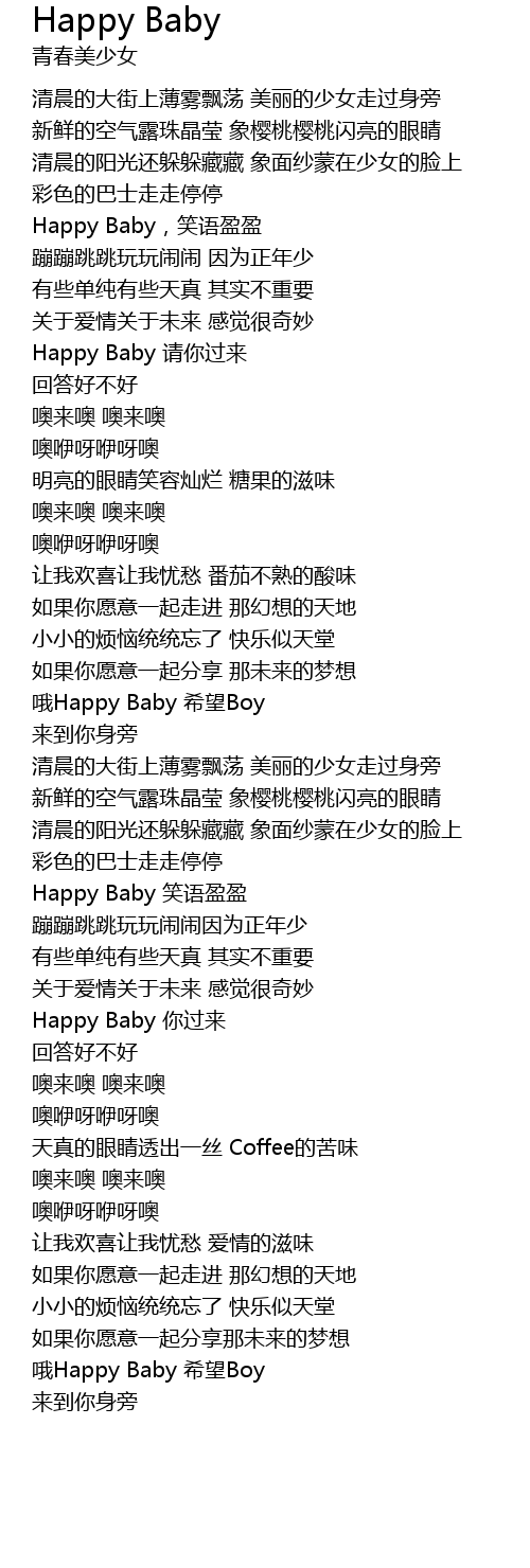 | [01:41.680] | 哦Happy Baby 希望Boy |