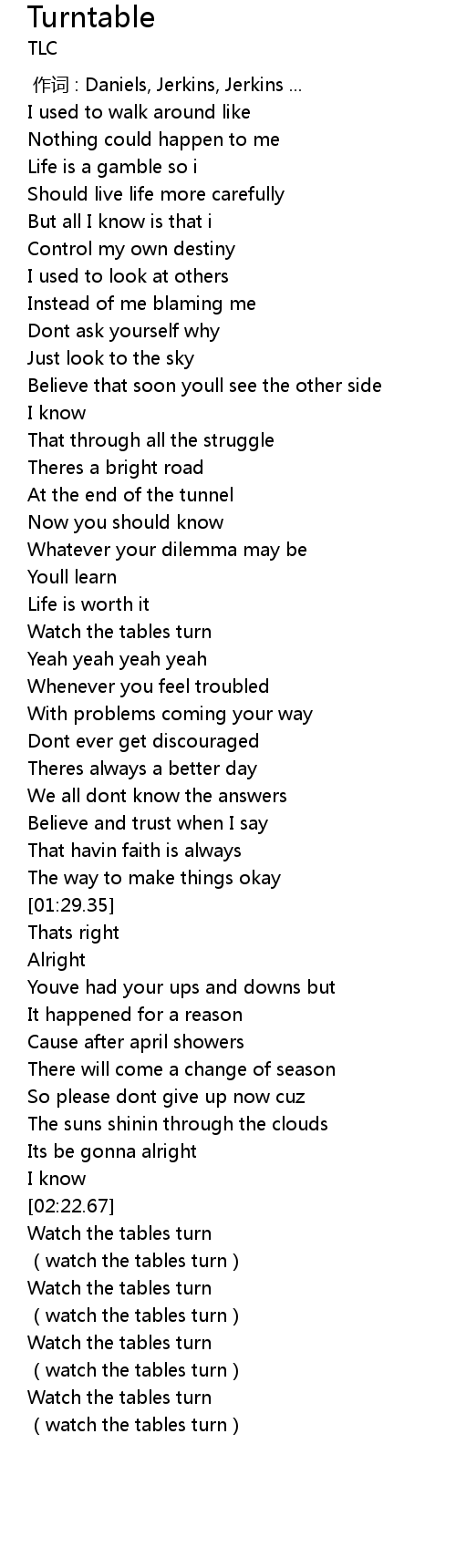| [03:00.29] | watch the tables turn |