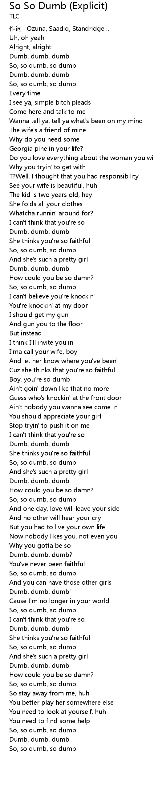 | Dumb, dumb, dumb | |