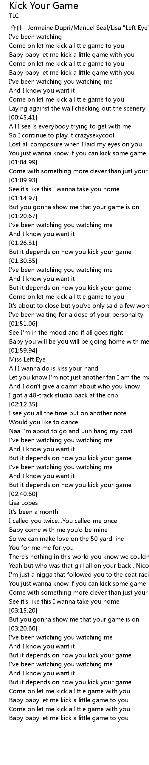 | [00:23.42] | Baby baby let me kick a little game with you |