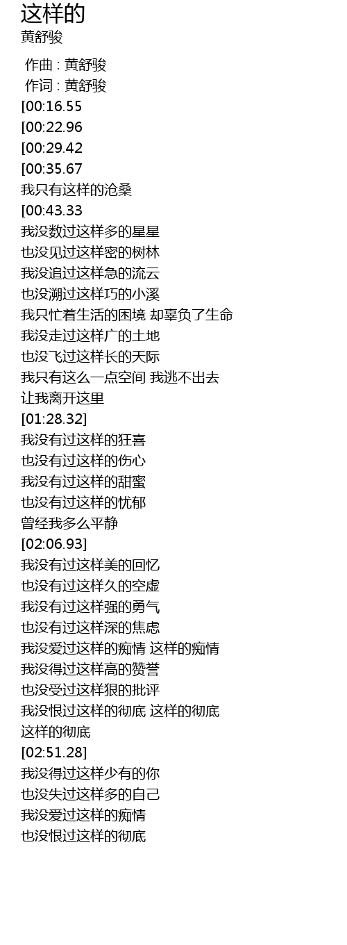 | [00:00.00] | 作曲 : 黄舒骏 |