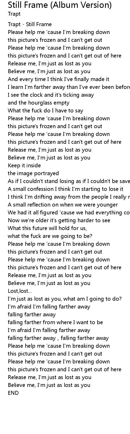 | [03:33.79] | this picture' s frozen and I can' t get out of here |