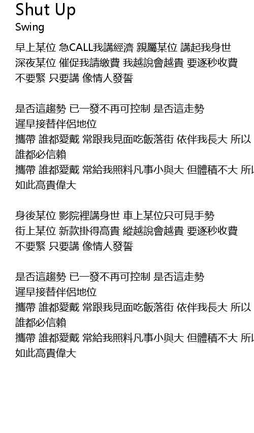 | 早上某位 急CALL我講經濟 親屬某位 講起我身世 | |