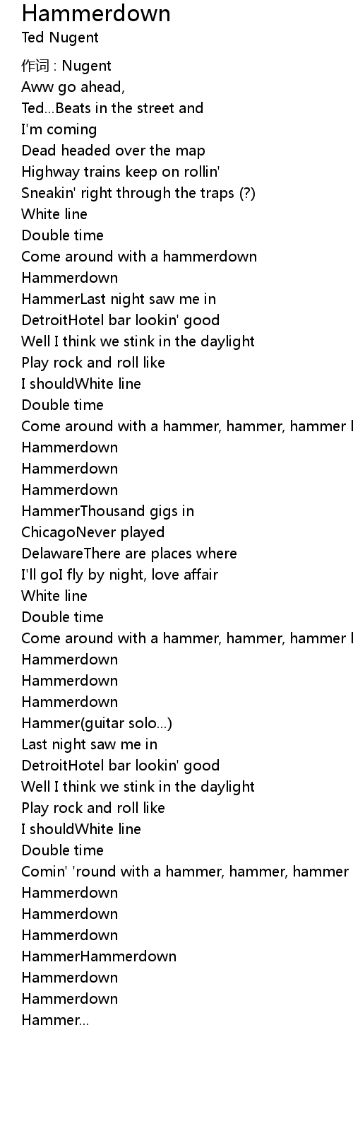 | Comin' ' round with a hammer, hammer, hammer hammerdown | |