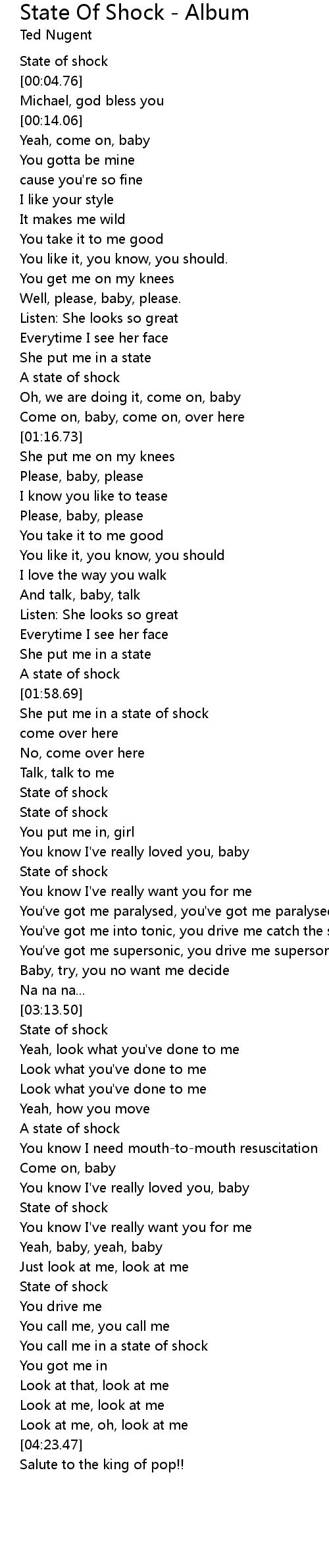 State Of Shock - Album 歌词
