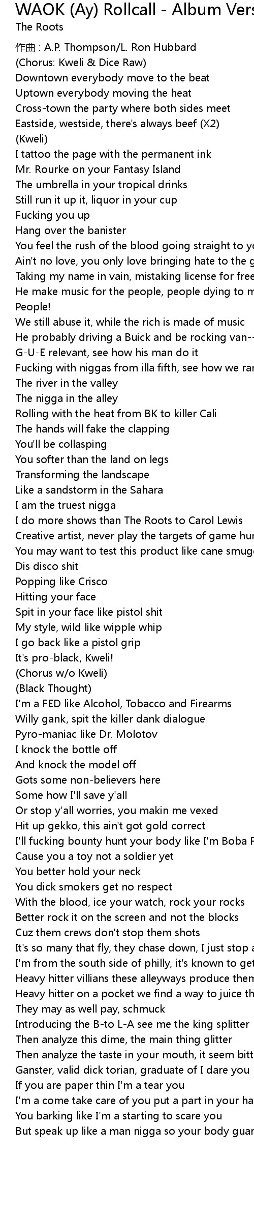 | 歌曲 | WAOK (Ay) Rollcall - Album Version (Explicit) |
