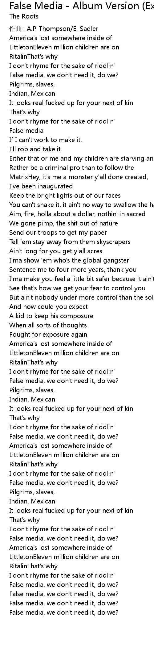 | 歌曲 | False Media - Album Version (Explicit) |