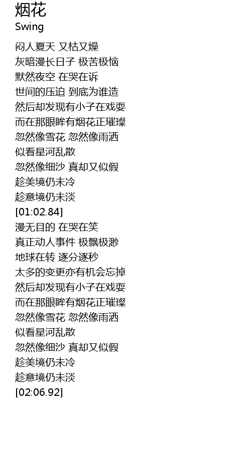 | [01:53.41] | 忽然像细沙 真却又似假 |