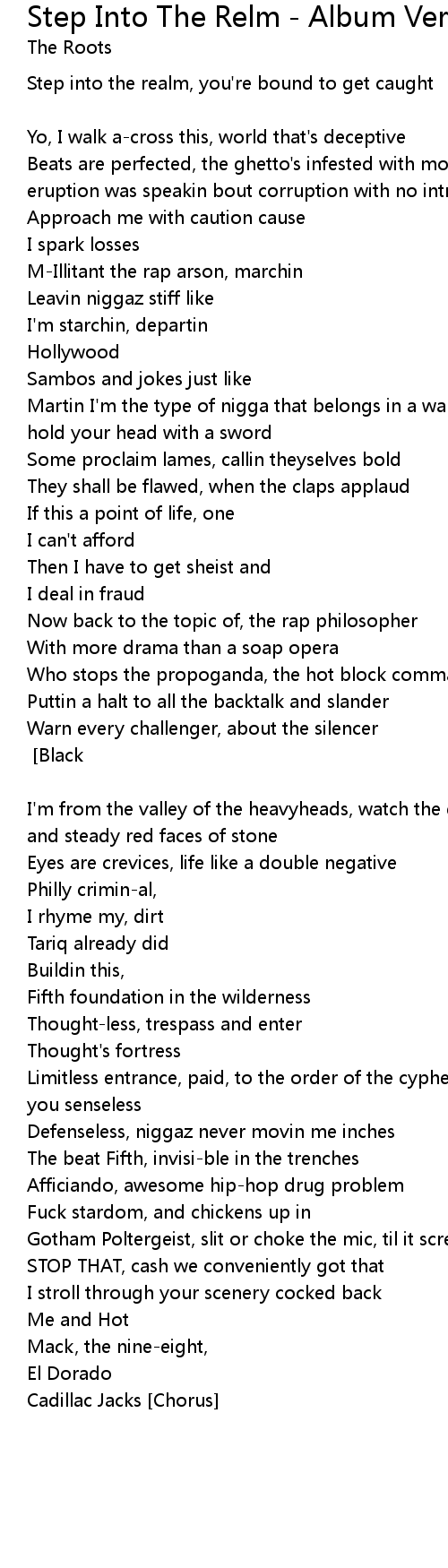 Muzzle in your mouth for the days that's on the calendar [Chorus] [Black Thought] |