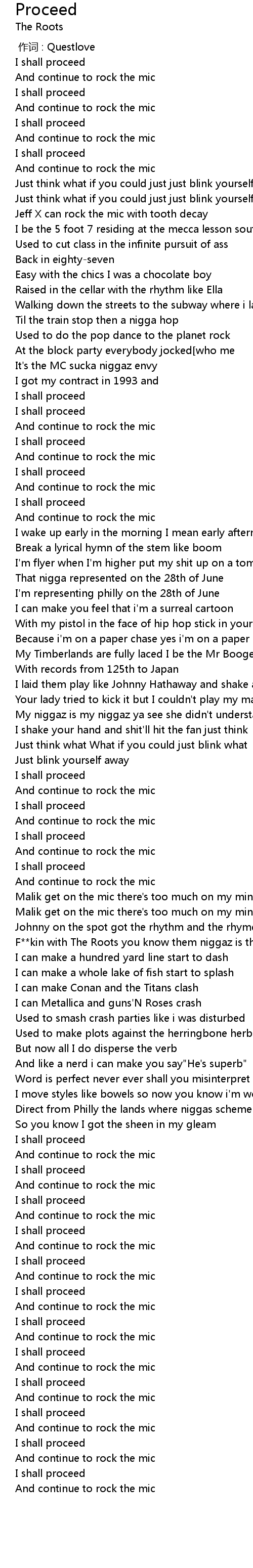 | [02:46.30] | F**kin with The Roots you know them niggaz is the dime |