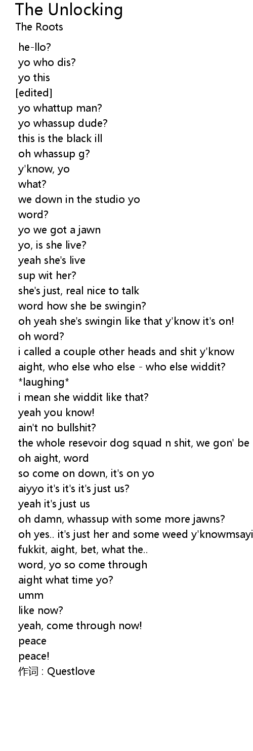 | [2] | word, yo so come through |