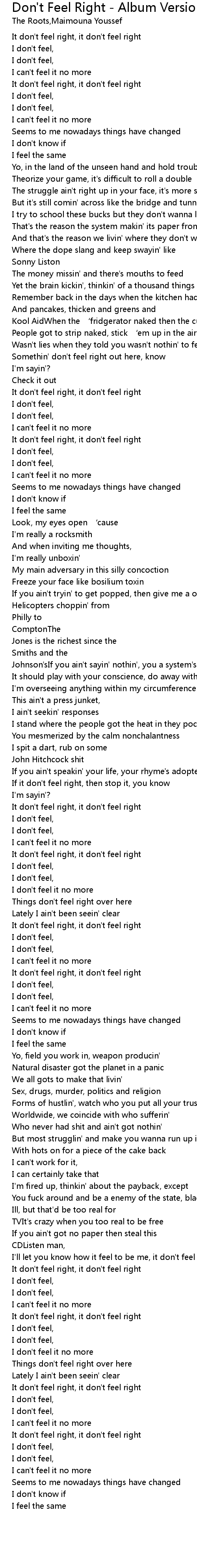 | It don't feel right, it don't feel right | |