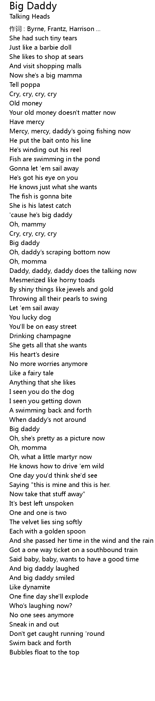 | Daddy, daddy, daddy does the talking now | |