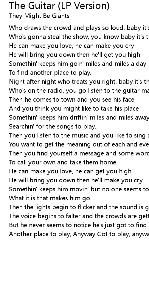 Night after night who treats you right, baby it's the guitar man |