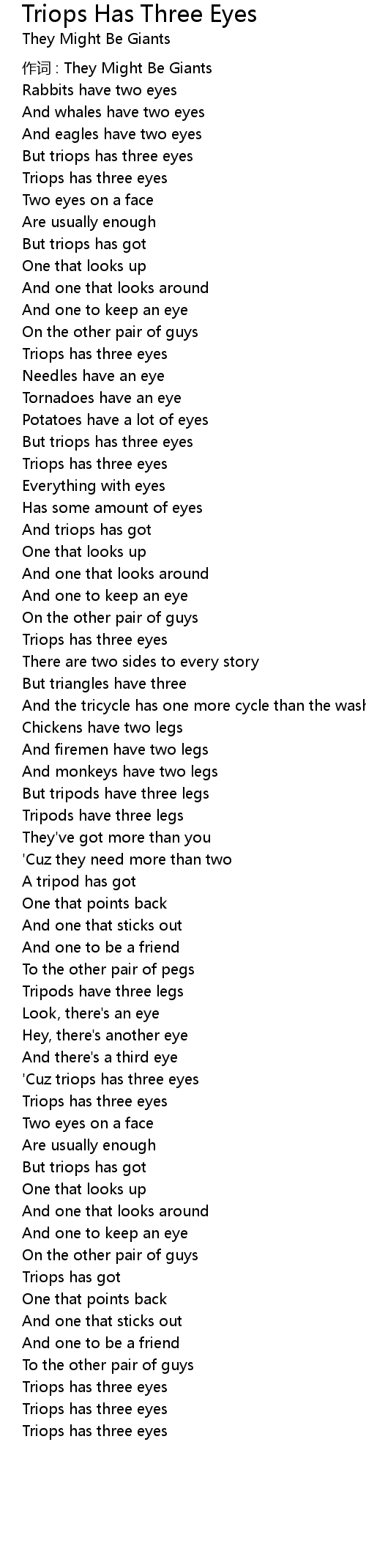 | 歌曲 | Triops Has Three Eyes |