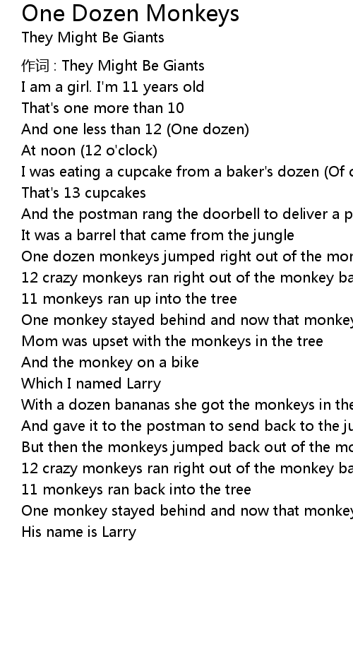 | 12 crazy monkeys ran right out of the monkey barrel | |