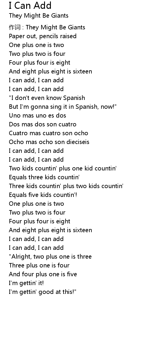 | 歌曲 | I Can Add |