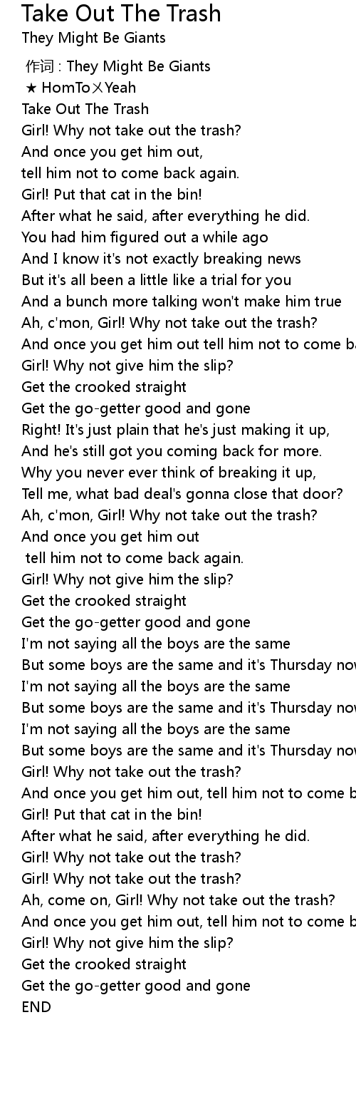| 歌曲 | Take Out The Trash |