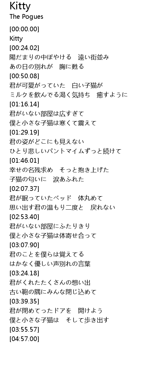 | [00:51.65] | 君が可愛がっていた 白い子猫が |