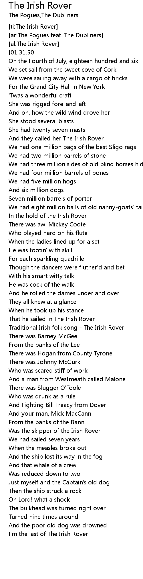 | [00:31.75] | And they called her The Irish Rover |