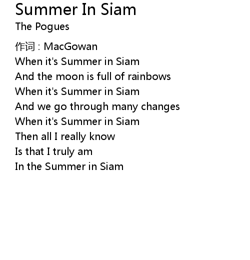 | 歌曲 | Summer In Siam |
