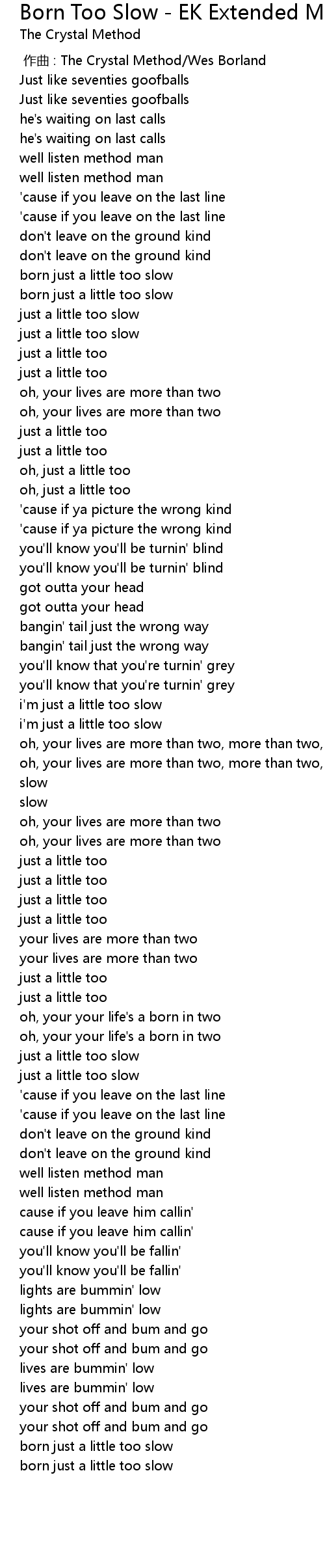 | 歌曲 | Born Too Slow - EK Extended Mix |