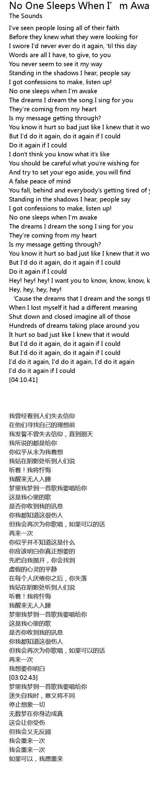 | [02:23.02] | No one sleeps when I' m awake |