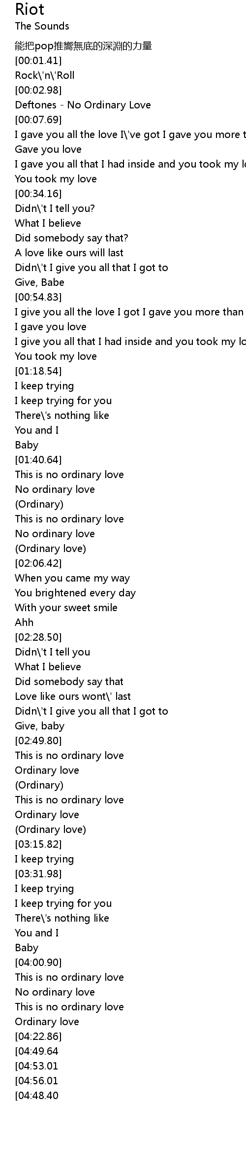 | [04:06.50] | No ordinary love |