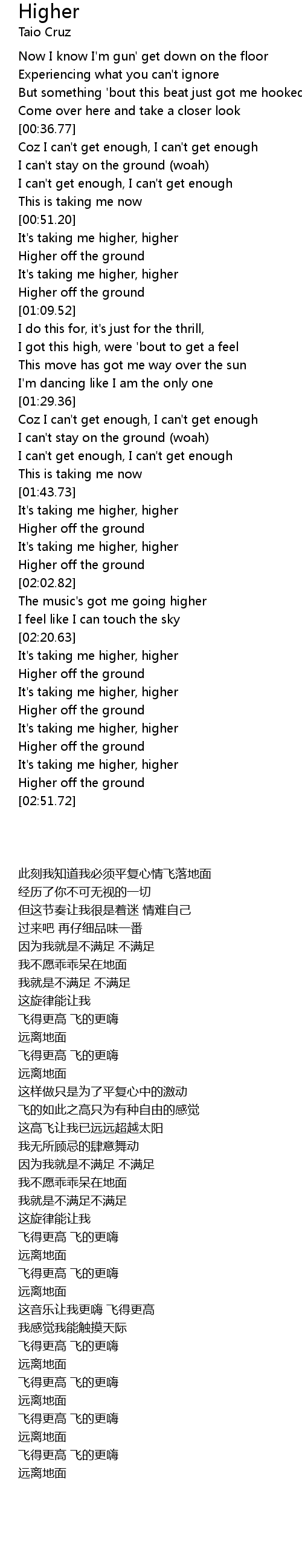The music's got me going higher |