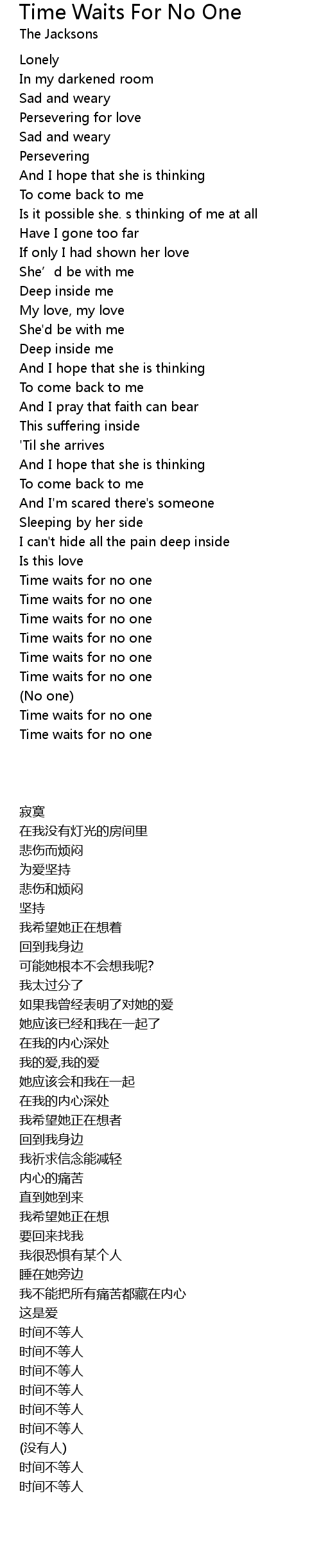 | 歌曲 | Time Waits For No One |