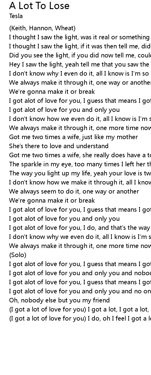 I got alot of love for you, I guess that means I got alot to lose |