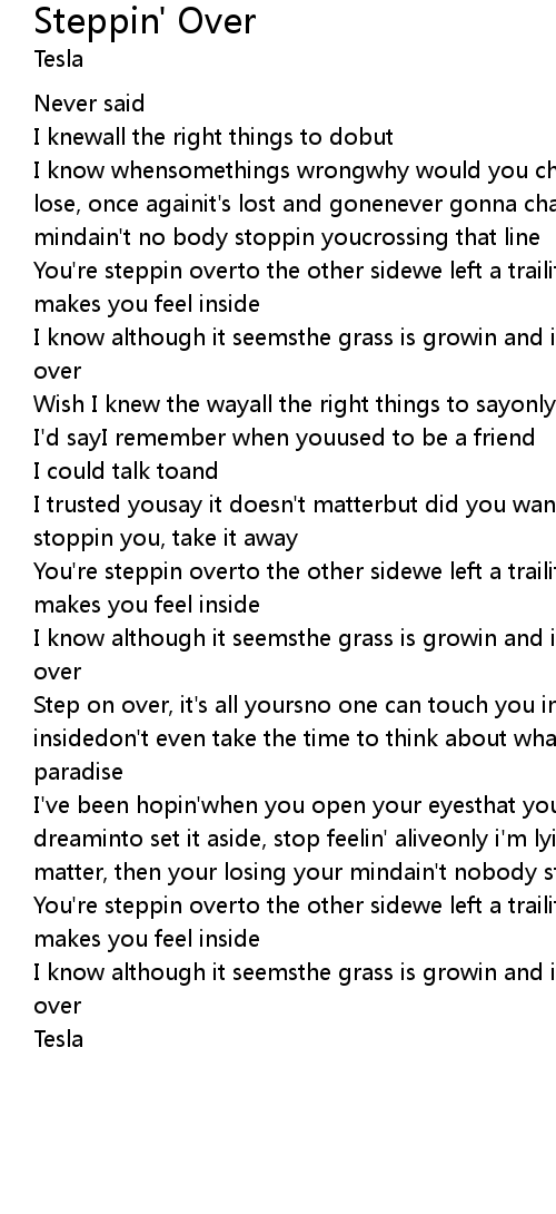 | You're steppin overto the other sidewe left a trailit only appealsto how it makes you feel inside | |