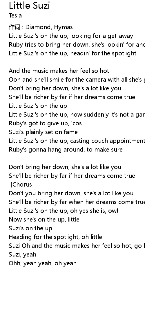 | Little Suzi' s on the up, headin' for the spotlight | |