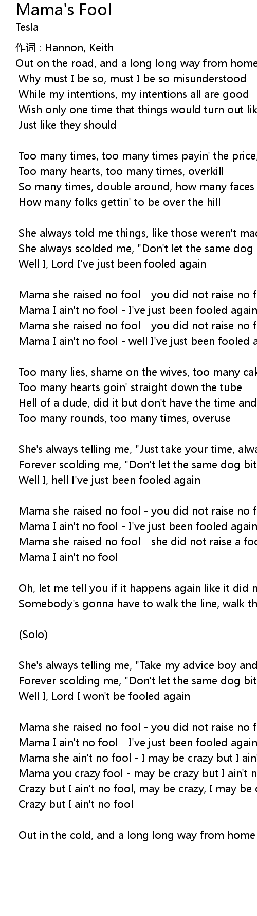 | Mama I ain' t no fool well I' ve just been fooled again | |