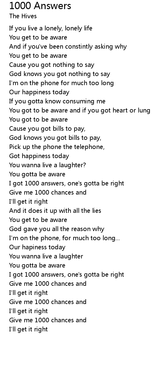 1000 Answers 歌词