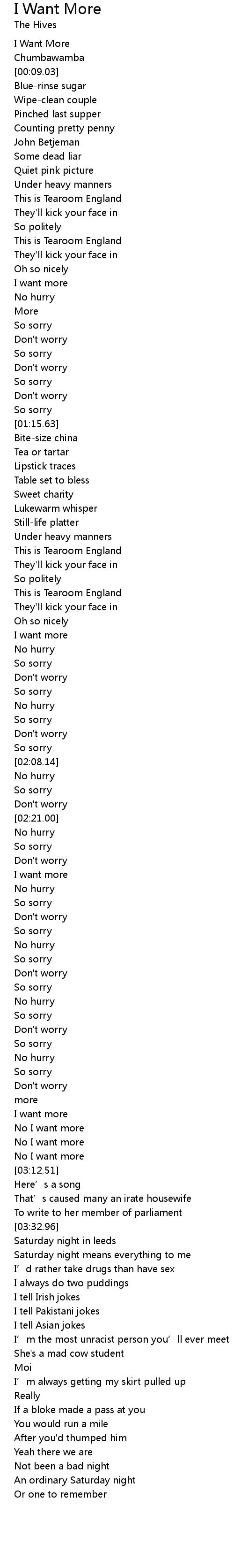 | [03:50.67] | I' m always getting my skirt pulled up |