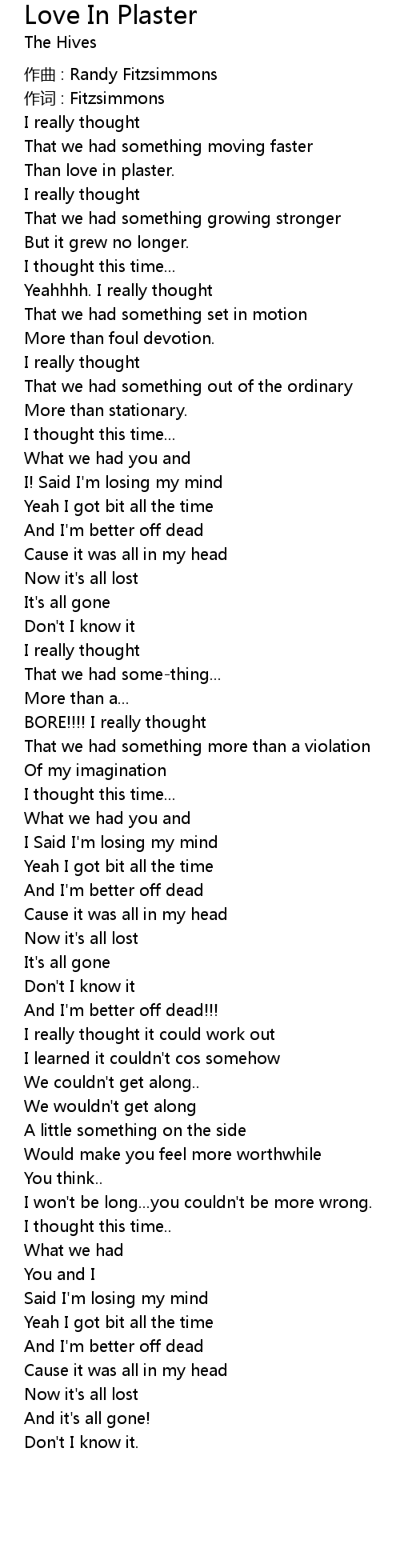 | 歌曲 | Love In Plaster |