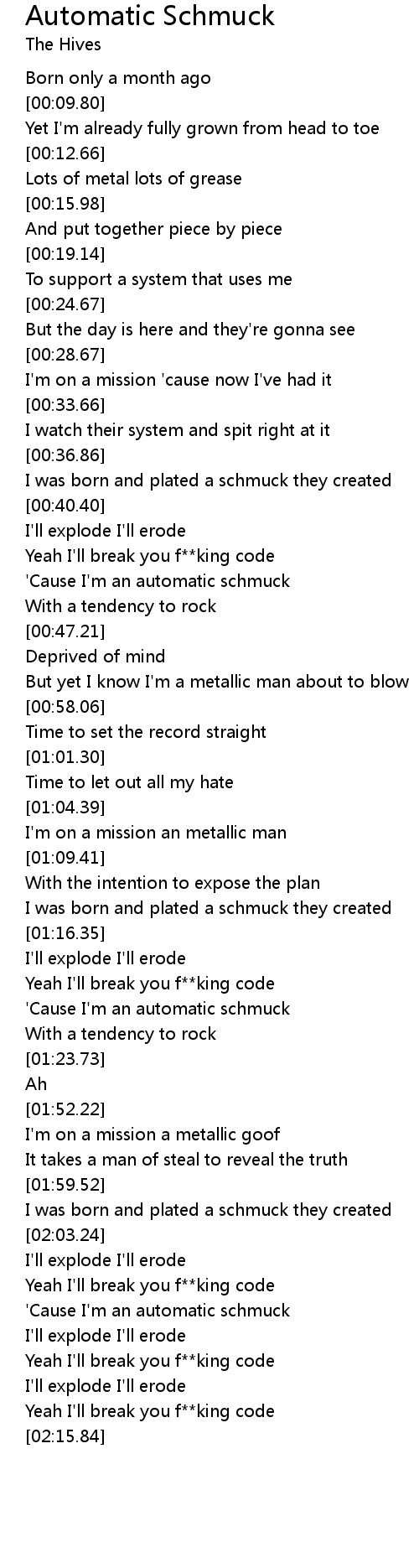 'Cause I'm an automatic schmuck |