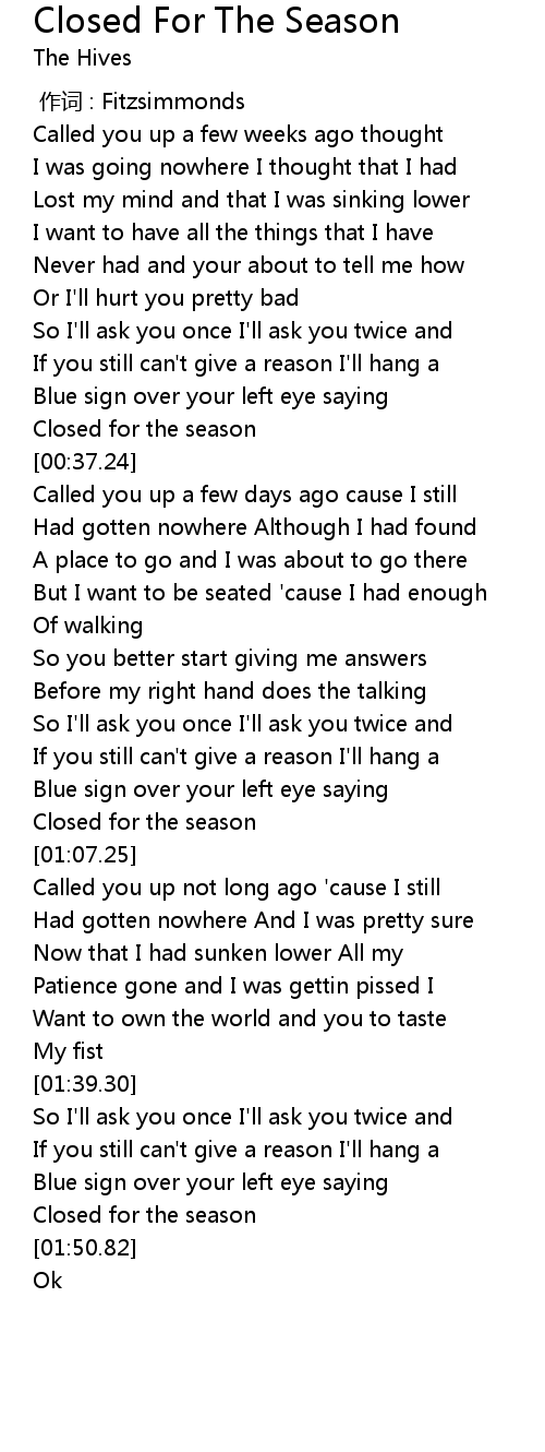 | [00:33.32] | If you still can't give a reason I'll hang a |