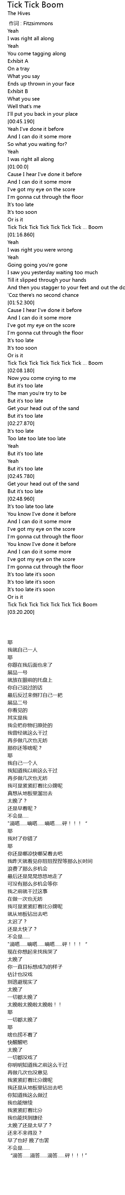 | [02:03.700] | Tick Tick Tick Tick Tick Tick Tick Boom |